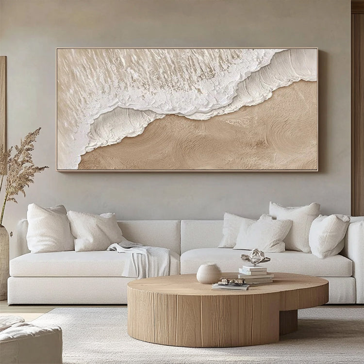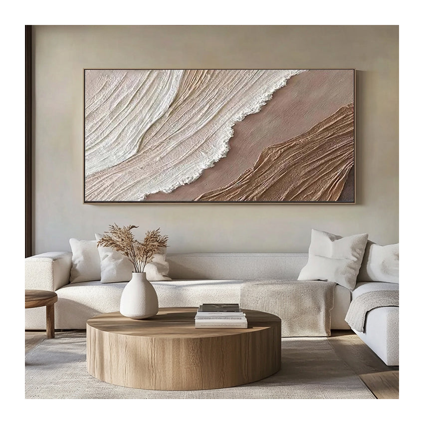 Handgemaltes Originalgemälde – Beige Wellentextur – Warmes WandbildJedes Gemälde wird von unseren professionellen Künstlern bei Noah Art Studio in Xiamen von Hand gemalt. Kein Druck, kein Filter – echte Handmalerei mit hochwertigen Acrylfarben auf Leinwand.