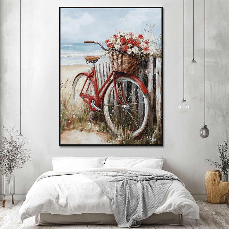 Rotes Fahrrad am Meer – Wandgemälde
