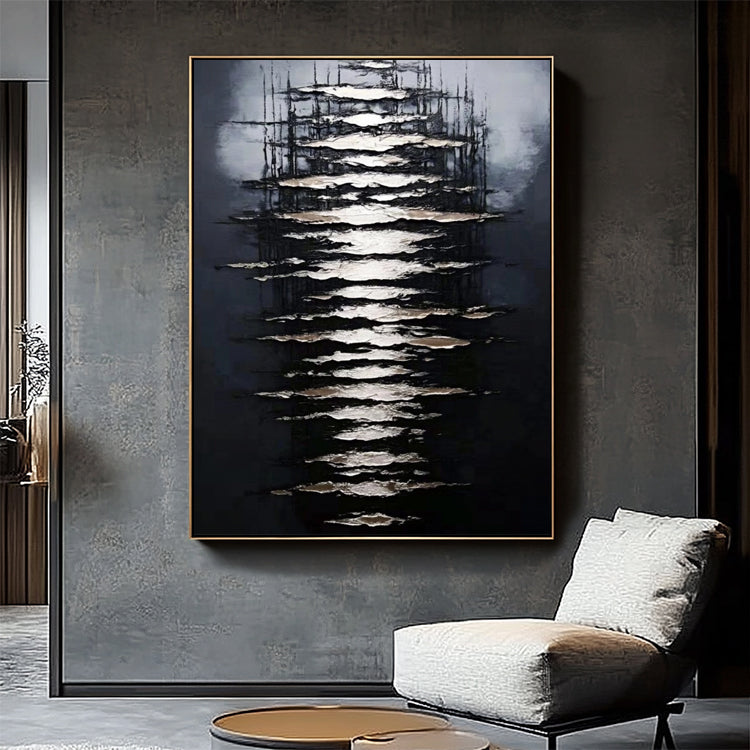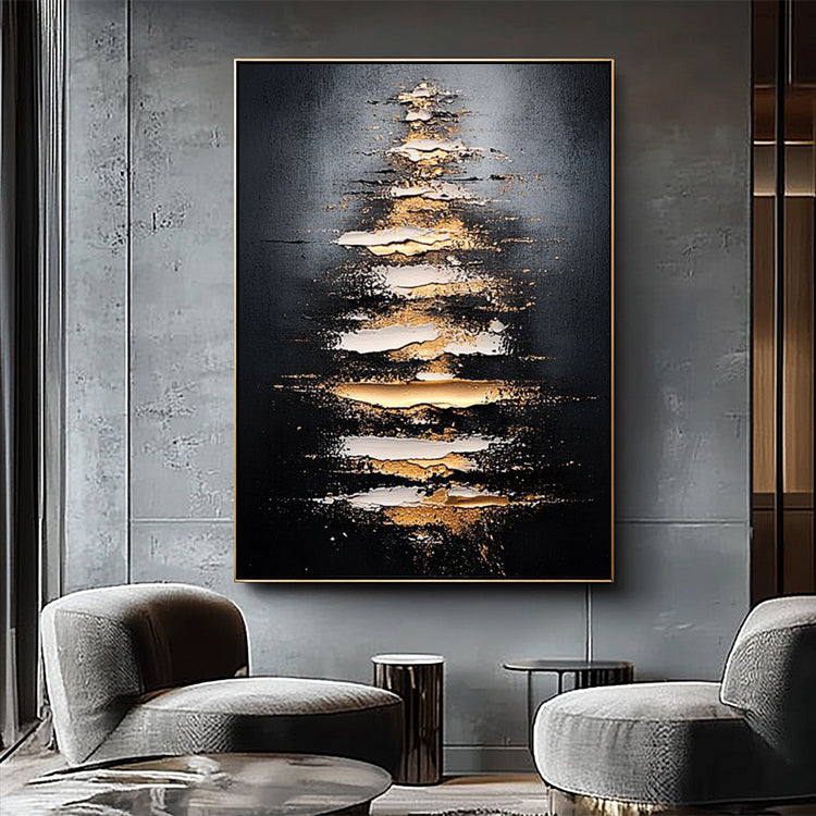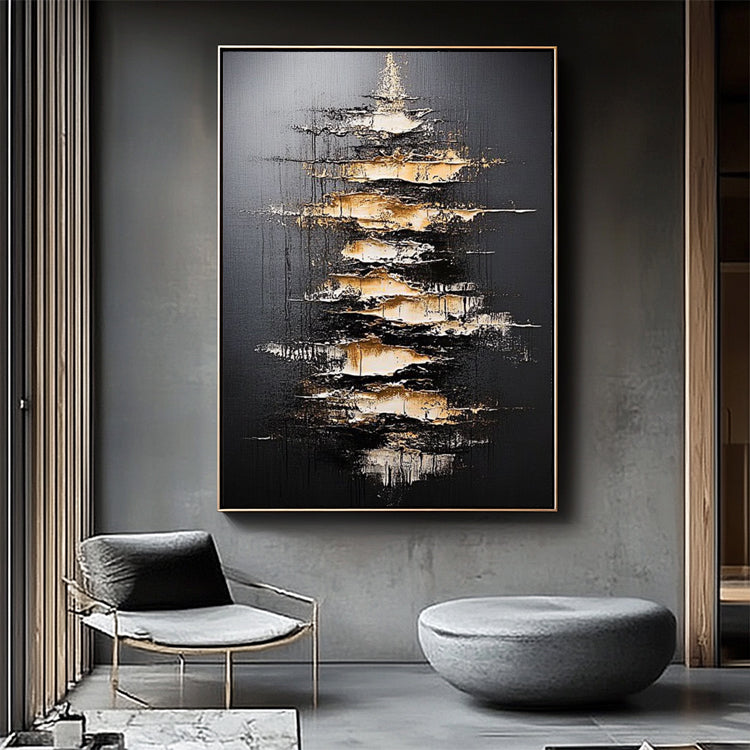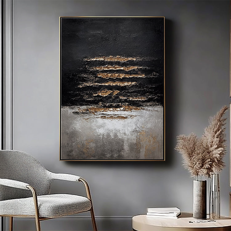 Schwarz Gold Licht Abstrakt – Wandgemälde