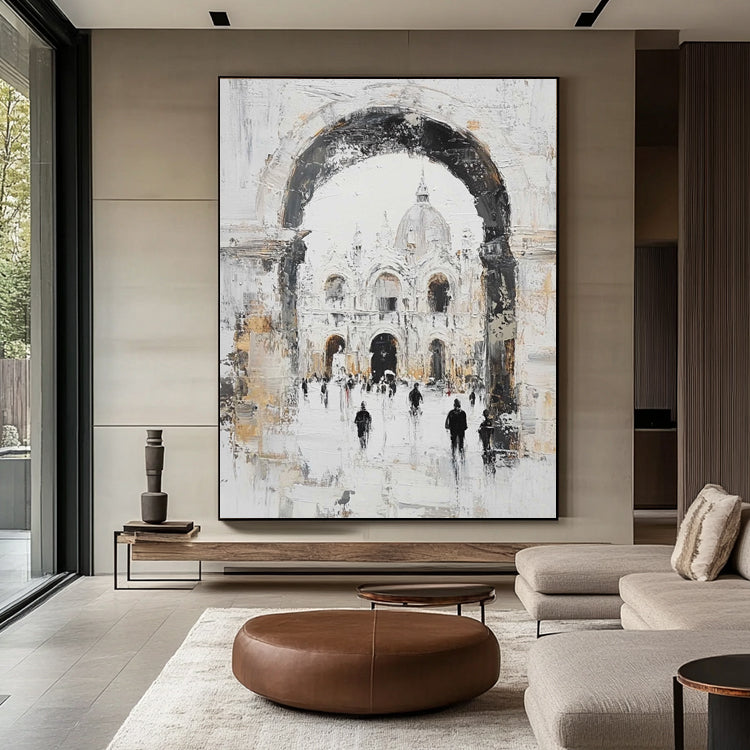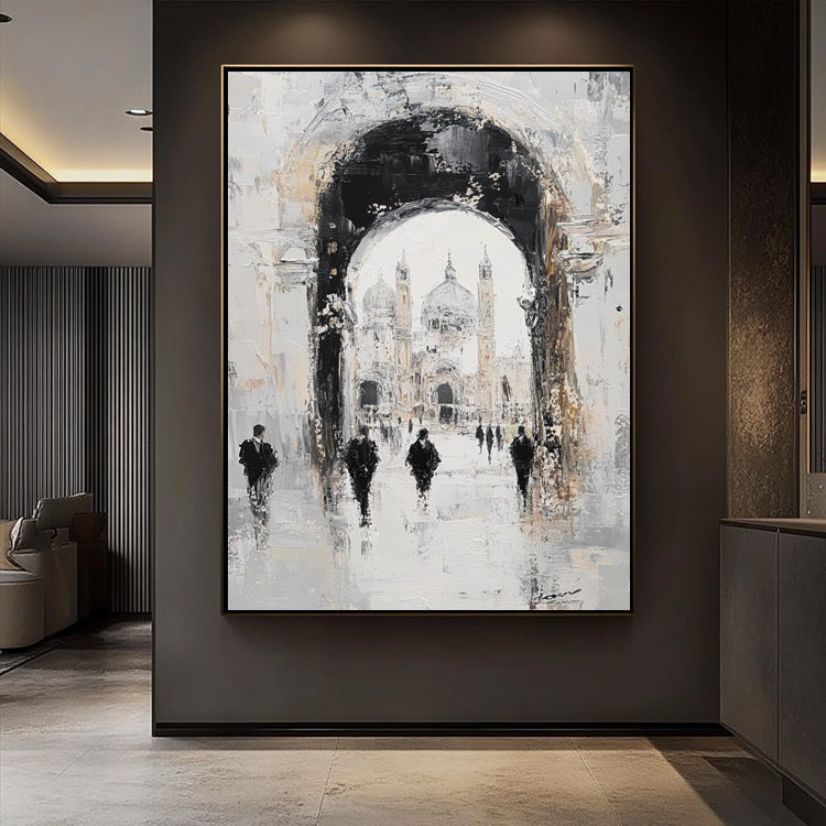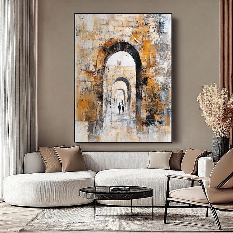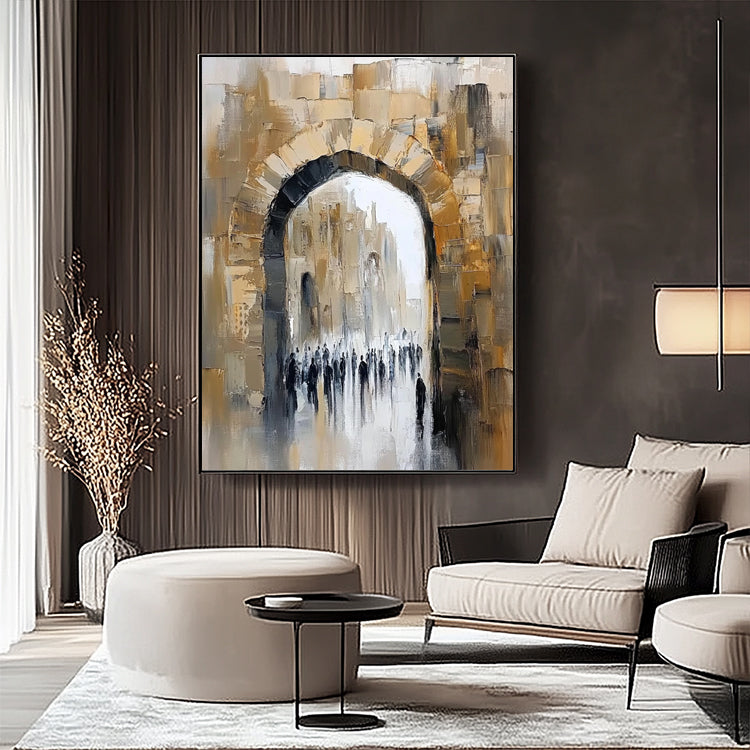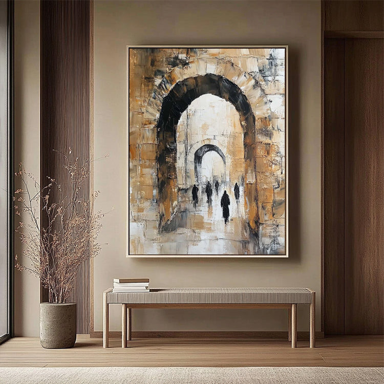 Handgemaltes Originalgemälde – Altes Steintor mit Figuren – WandgemäldeJedes Gemälde wird von unseren professionellen Künstlern bei Noah Art Studio in Xiamen von Hand gemalt. Kein Druck, kein Filter – echte Handmalerei mit hochwertigen Acrylfarben auf Leinwand.