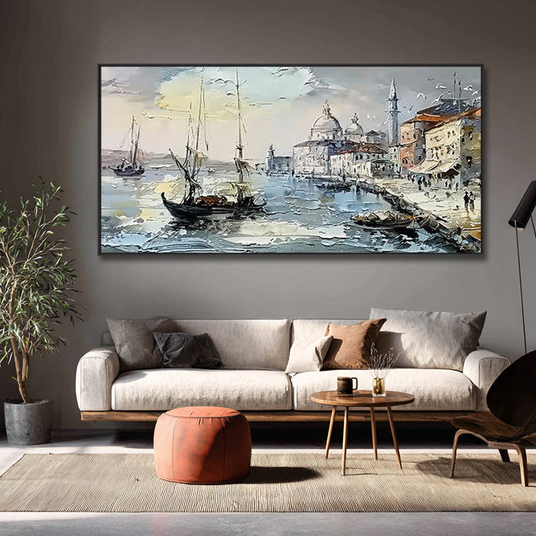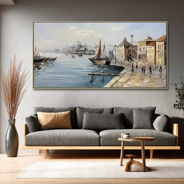 Handgemaltes Originalgemälde – Hafen Stadtbild Klassisch – GemäldeJedes Gemälde wird von unseren professionellen Künstlern bei Noah Art Studio in Xiamen von Hand gemalt. Kein Druck, kein Filter – echte Handmalerei mit hochwertigen Acrylfarben auf Leinwand.