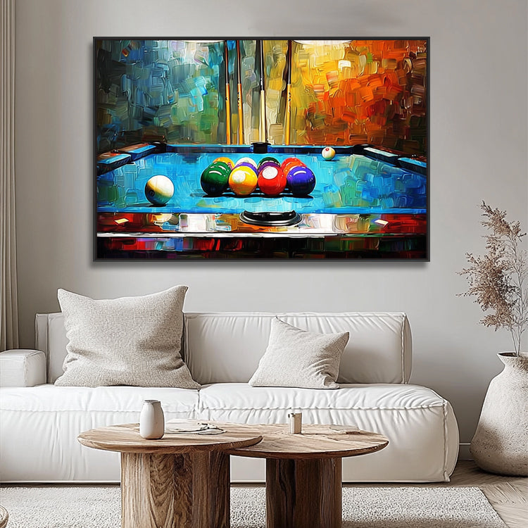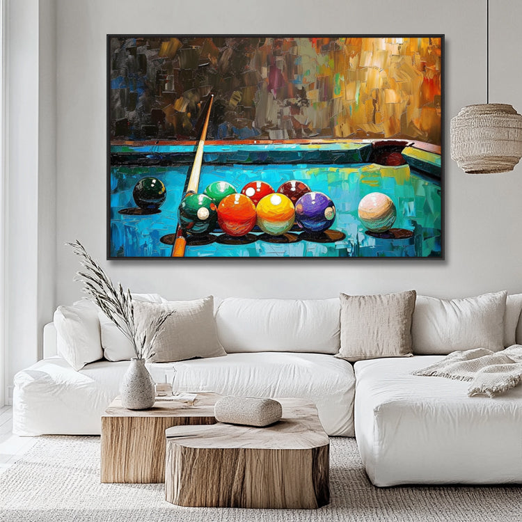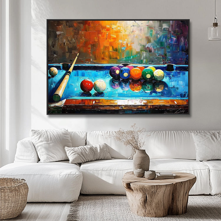 Handgemaltes Originalgemälde – Billard Gemälde Abstrakt – BuntJedes Gemälde wird von unseren professionellen Künstlern bei Noah Art Studio in Xiamen von Hand gemalt. Kein Druck, kein Filter – echte Handmalerei mit hochwertigen Acrylfarben auf Leinwand.