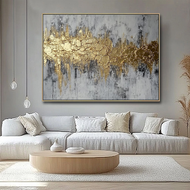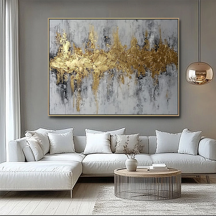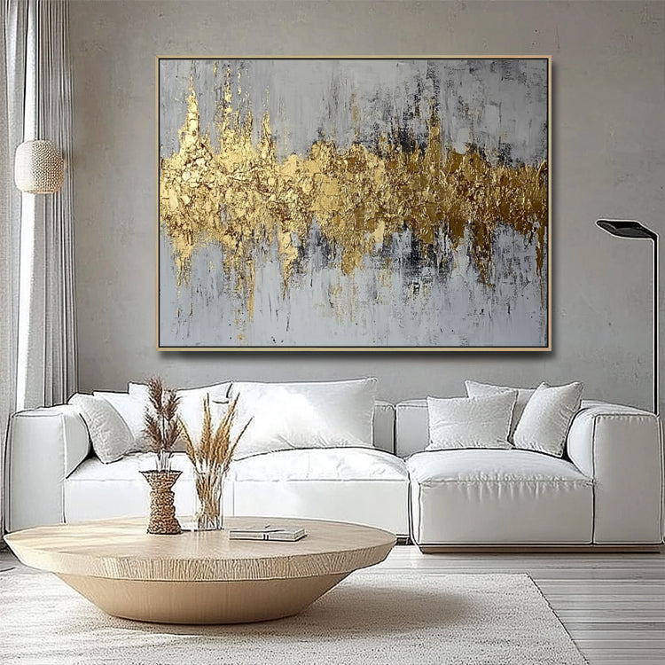 Handgemaltes Originalgemälde – Gold Grau Abstrakt Horizontal – WandgemäldeJedes Gemälde wird von unseren professionellen Künstlern bei Noah Art Studio in Xiamen von Hand gemalt. Kein Druck, kein Filter – echte Handmalerei mit hochwertigen Acrylfarben auf Leinwand.