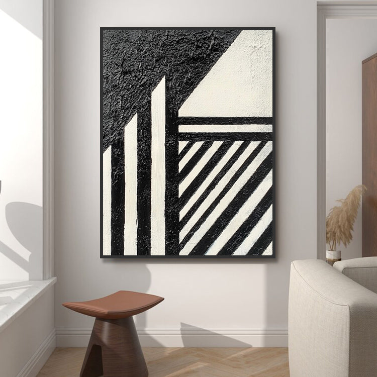 Schwarz Weiss Geometrisch Struktur – Wandgemälde
